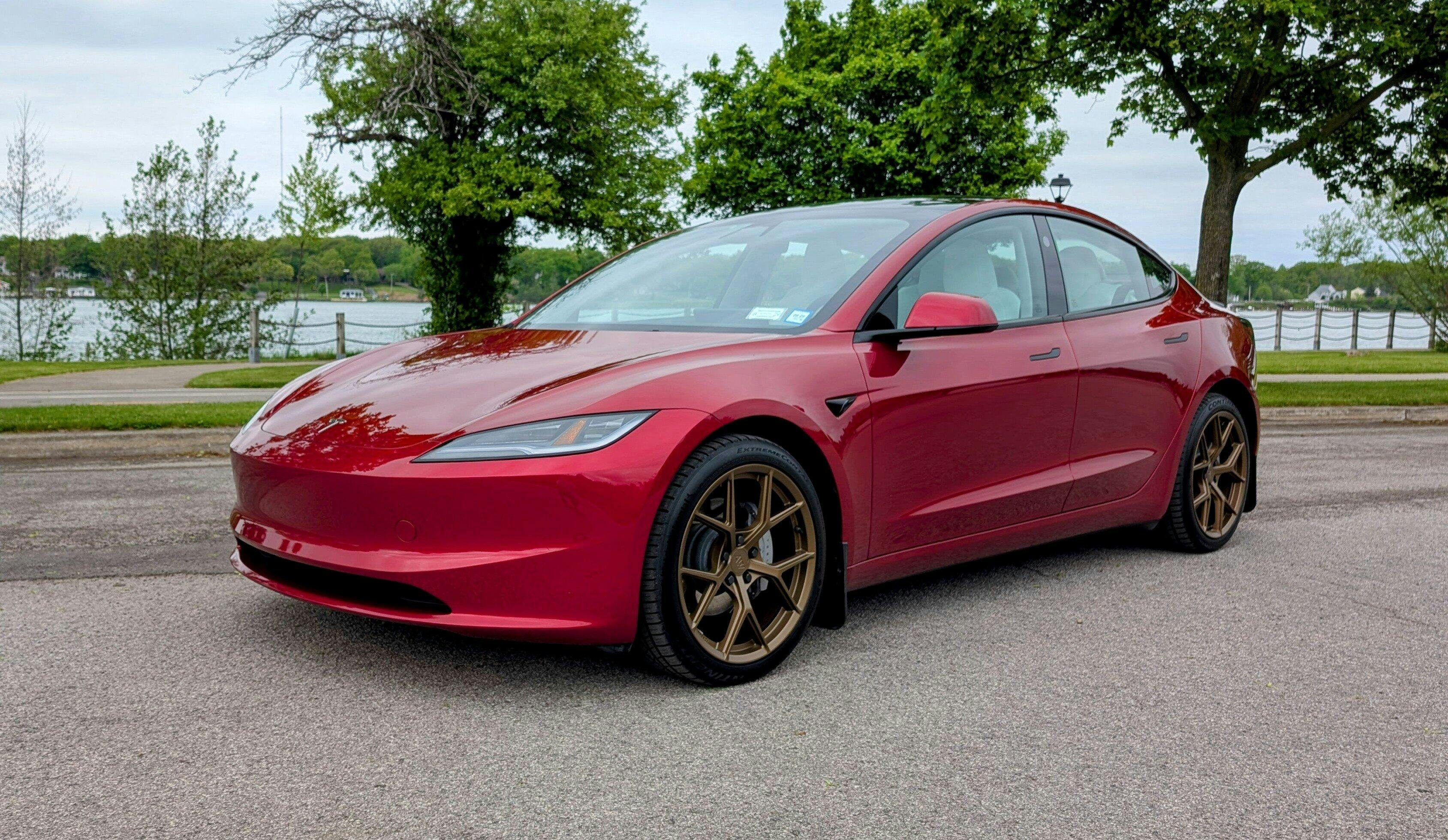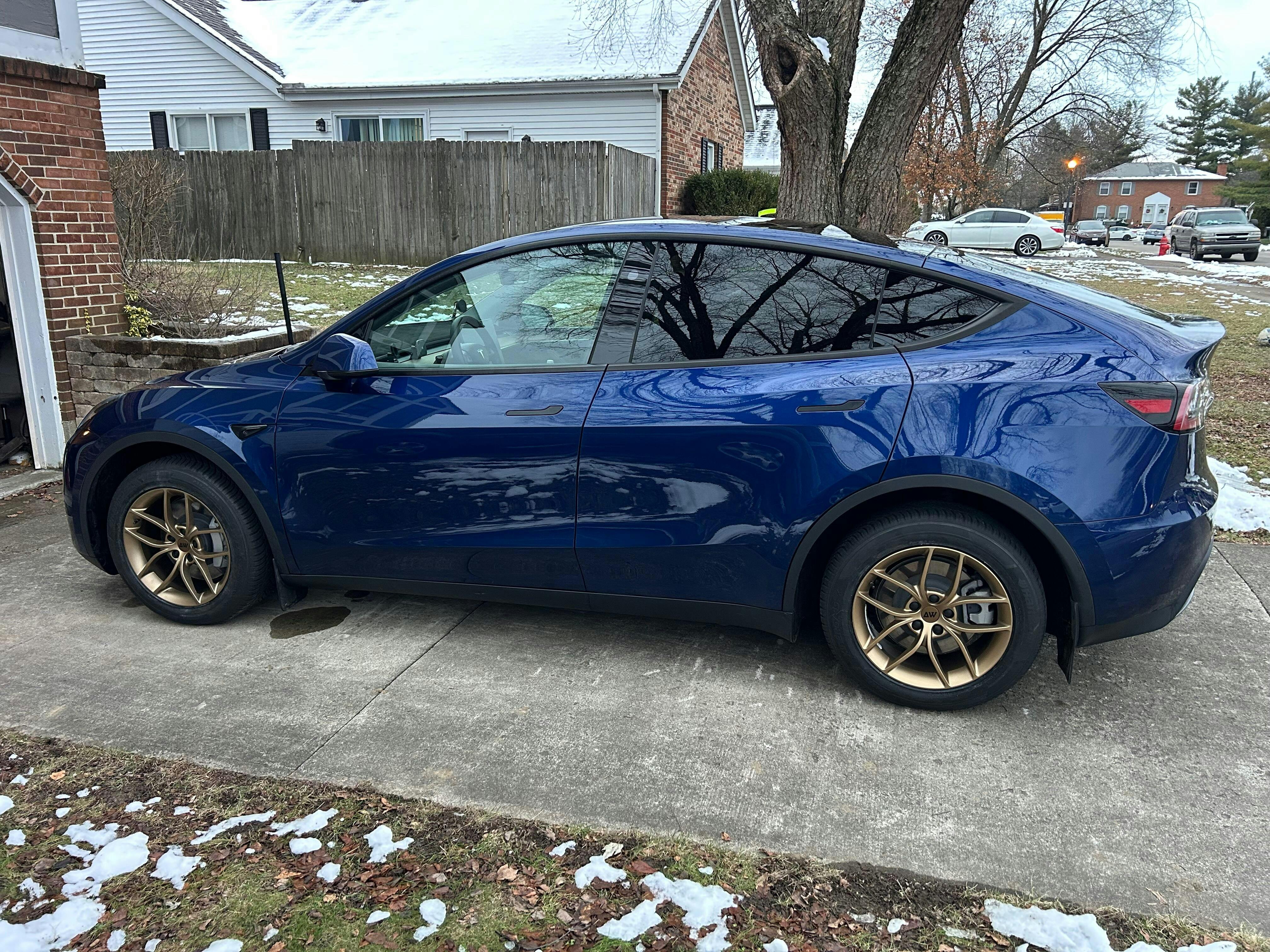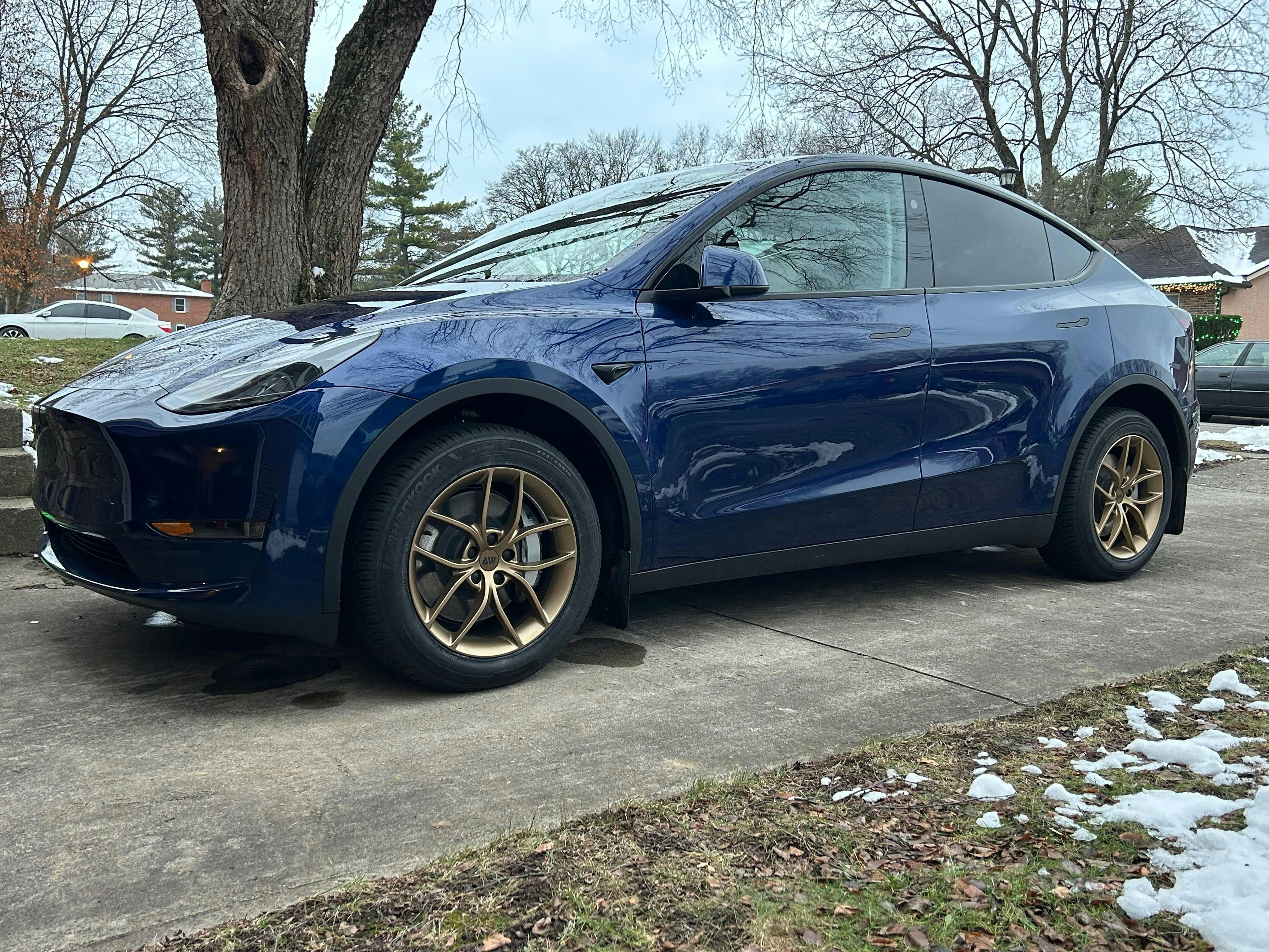 I picked up a used 2022 Model 3 Performance in blue earlier this year and love it. Unfortunately where I live in rural Oklahoma the roads are not friendly for 20” wheels and low profile tires. I compared several company’s options online before deciding on the Atomic Wheels AW21 due to looks, cost, and the fact that their 18” wheels fit on the larger brake calipers of the Model 3 Performance. I went with the bronze, hoping it would stand out from my normal dark wheels and would complement the blue car. I couldn’t be more thrilled. They look great, the ride is noticeably smoother, and my range has increased by about 10% with the lighter wheels.