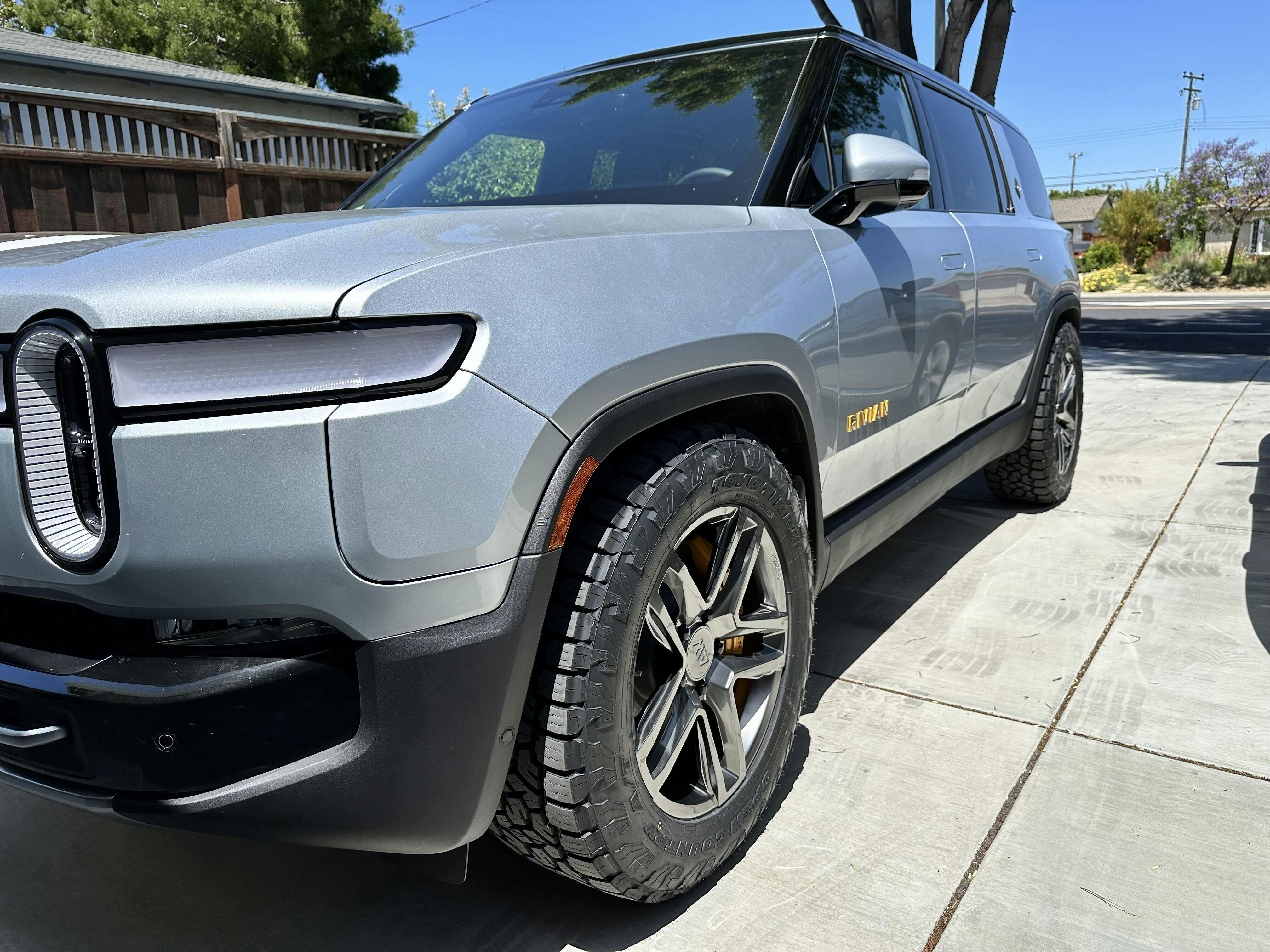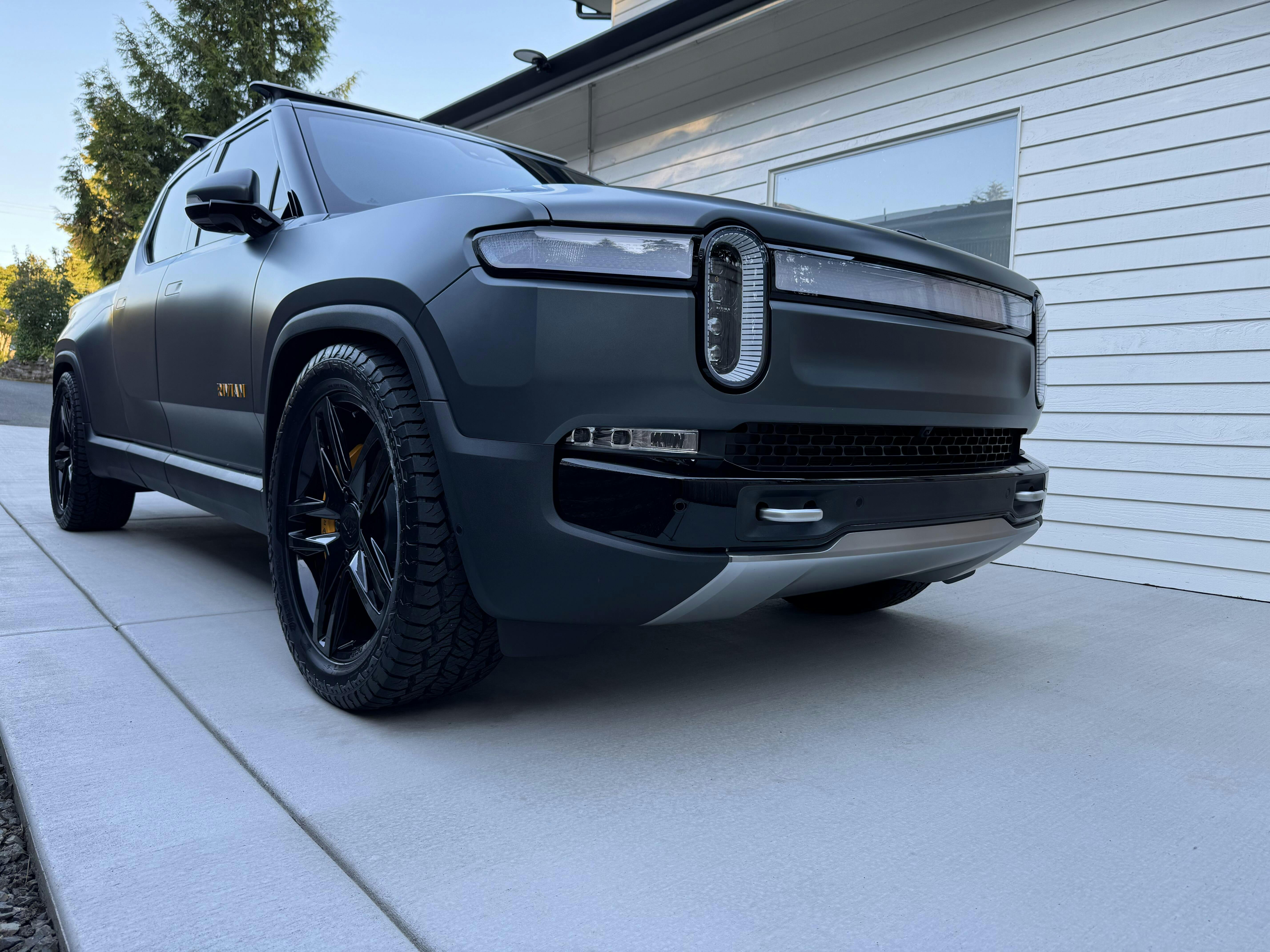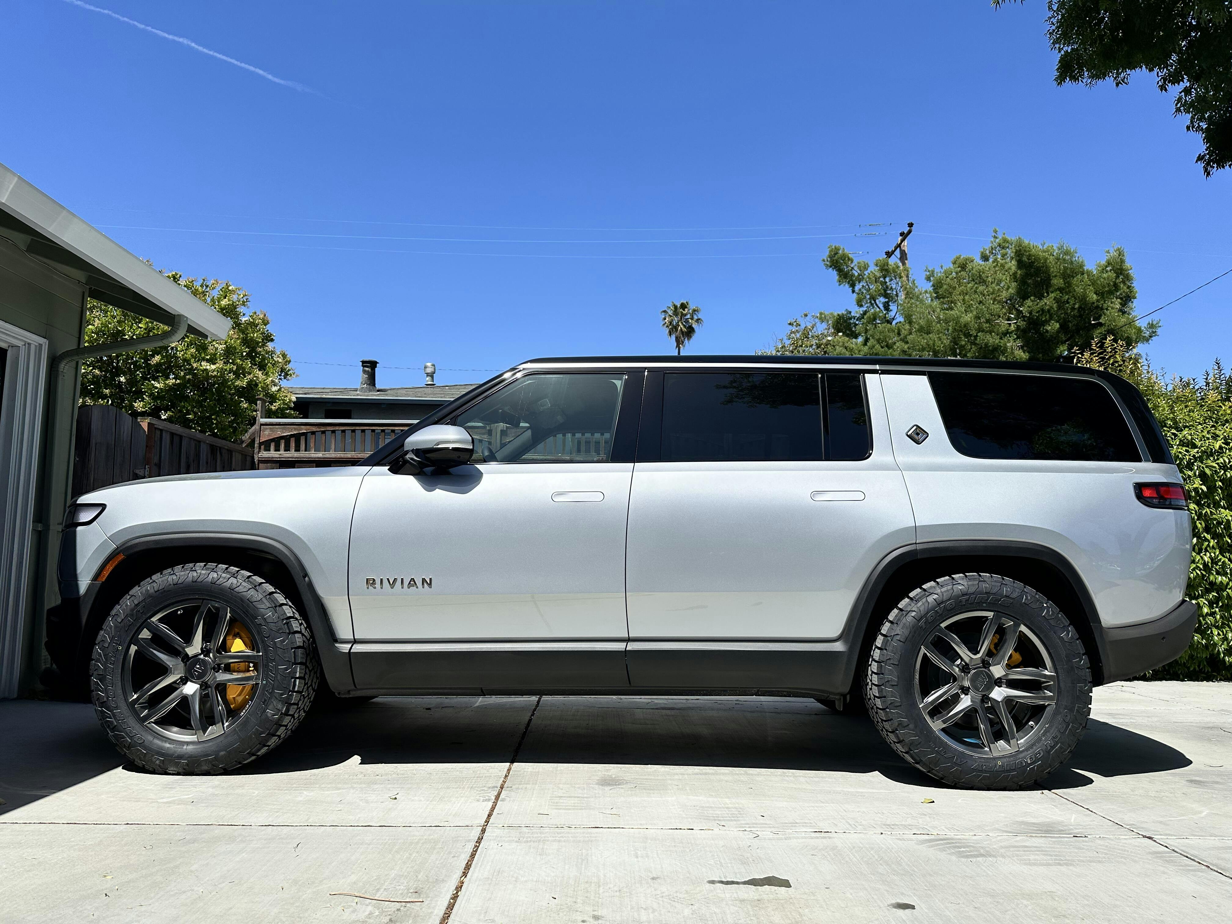 Love the way the Titan AW10s on LA Silver R1S. The stance is just slightly wider than the stock flower power 21s, but that just adds to how the rims and tires just transformed the look of the car. While waiting for the rims (which were shipped pretty quickly), I was a little nervous about the how the color would look on the LA Silver truck. I think it looks great - what do you think?